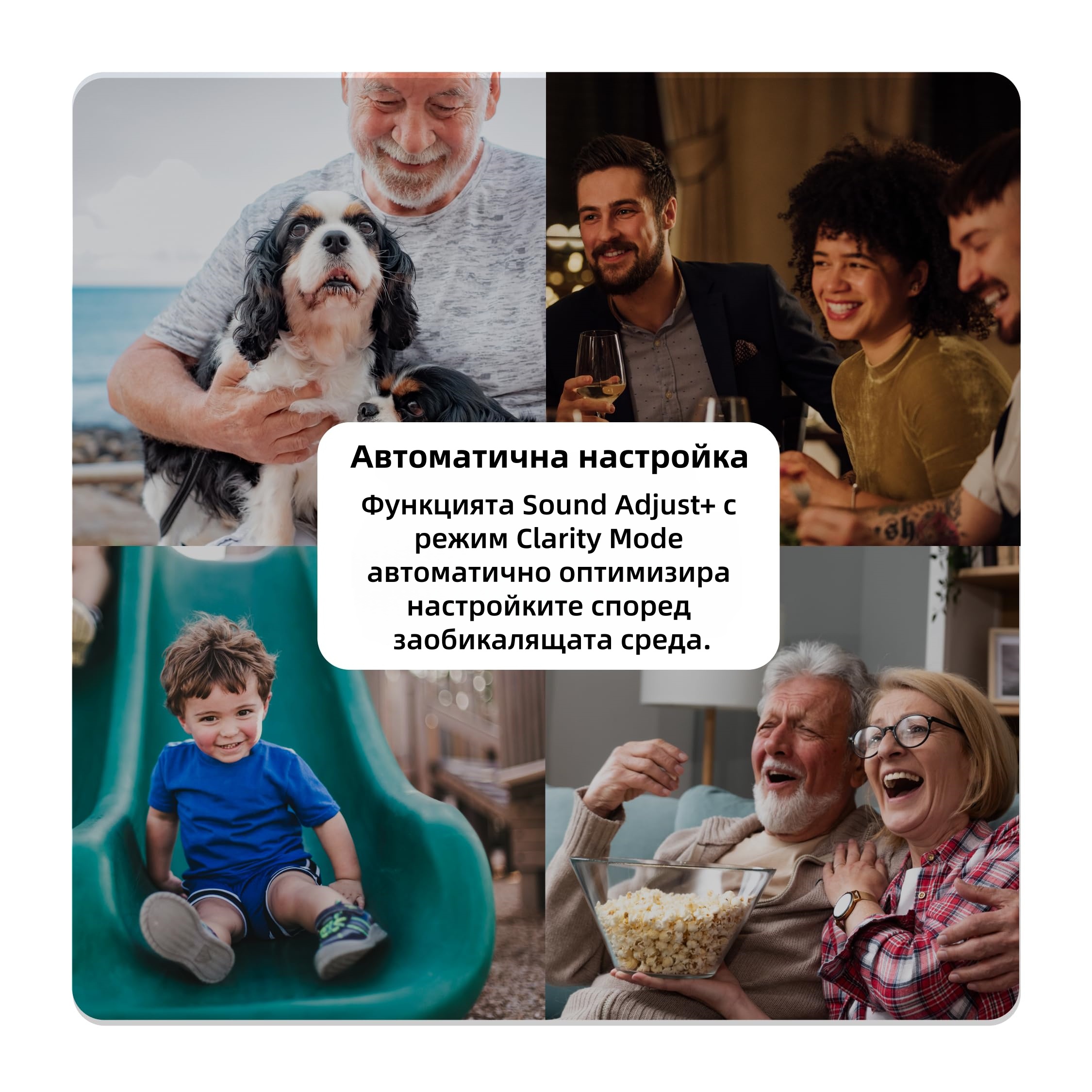 Адаптивна технология – Позволява на потребителите да персонализират настройките според индивидуалните си слухови нужди, без да посещават клиника.